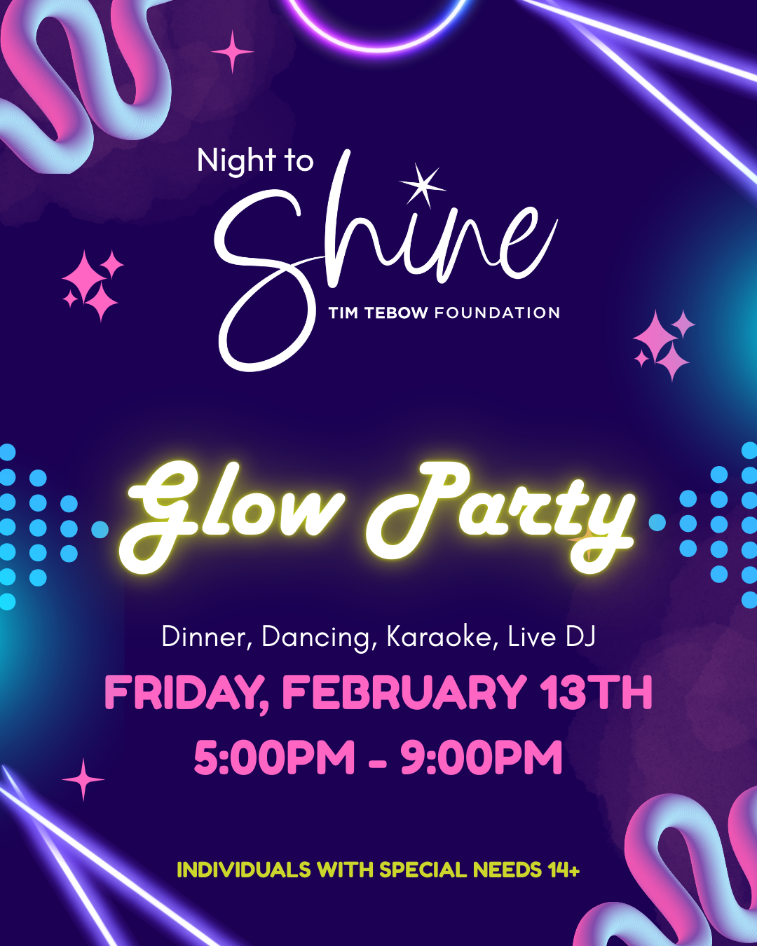 We are excited to once again host Night to Shine, sponsored by the Tim Tebow Foundation! Night to Shine is a world wide event that gives individuals with special needs a prom experience filled with pampering, fun, joy, and love.